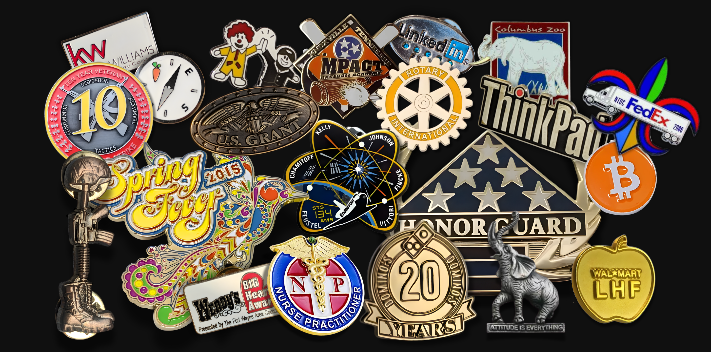 Company Logo Pins | Employee Recognition Pins | Membership Pins | Business Lapel Pins | Donor Appreciation Pins | Event Pins | Award Pins | Commemorative Pins | and more.